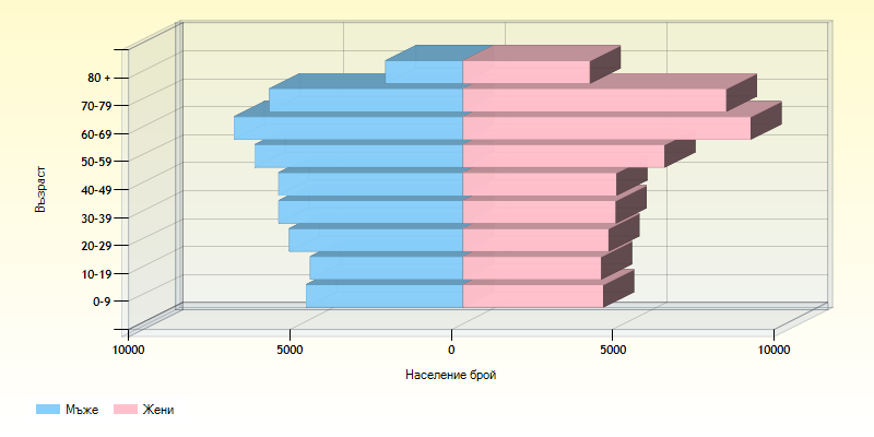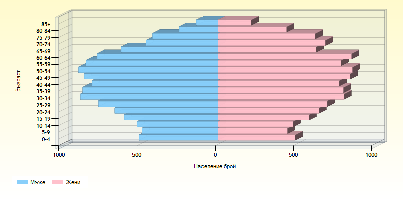 Разпределение на градовете според броя на населението по пол и възраст