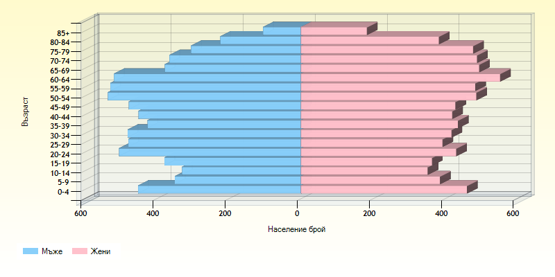 Разпределение на населените места според броя на населението по пол и възраст