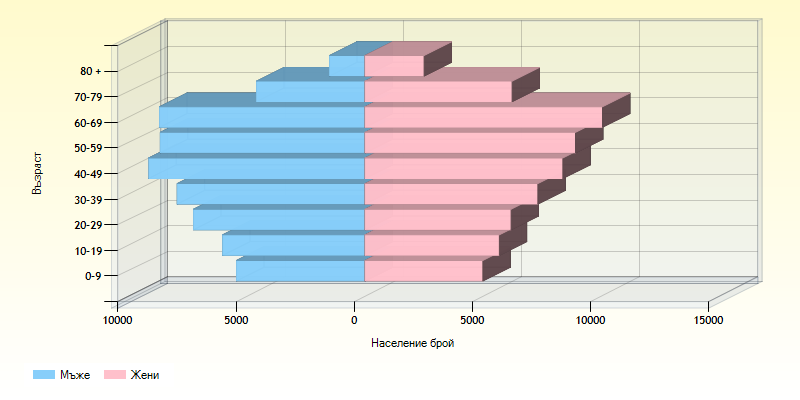 Разпределение на градовете според броя на населението по пол и възраст