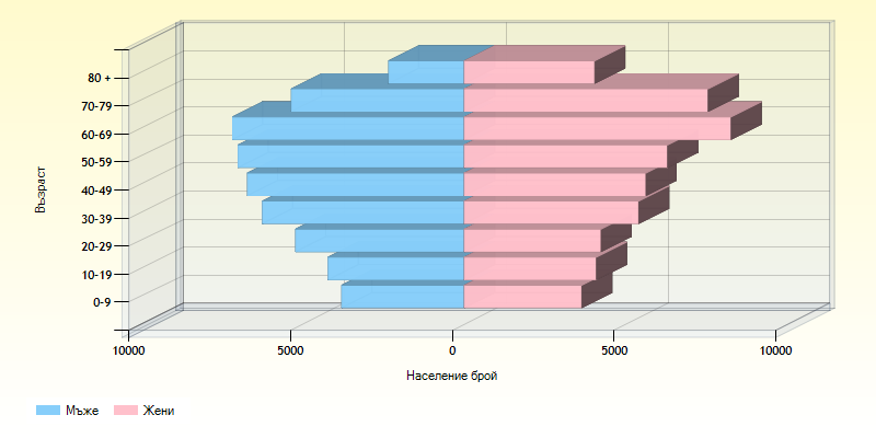 Разпределение на селата според броя на постоянното население по пол и възраст