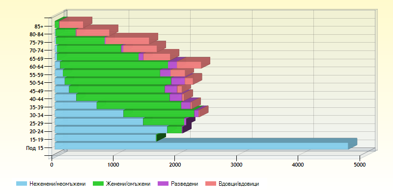 Разпределение на градовете според броя на населението по пол и възраст