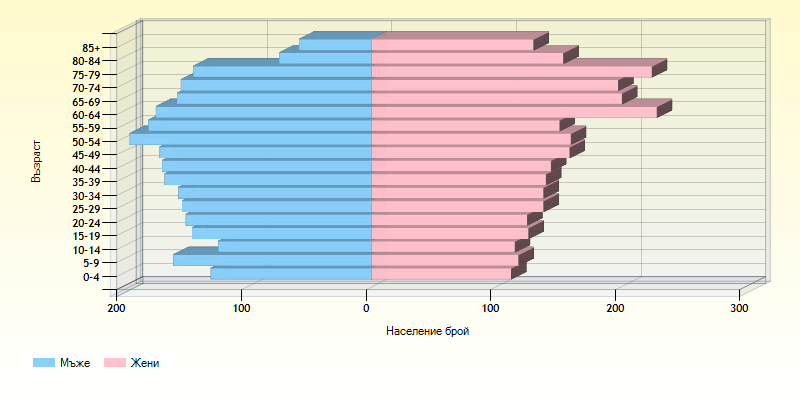 Разпределение на селата според броя на постоянното население по пол и възраст